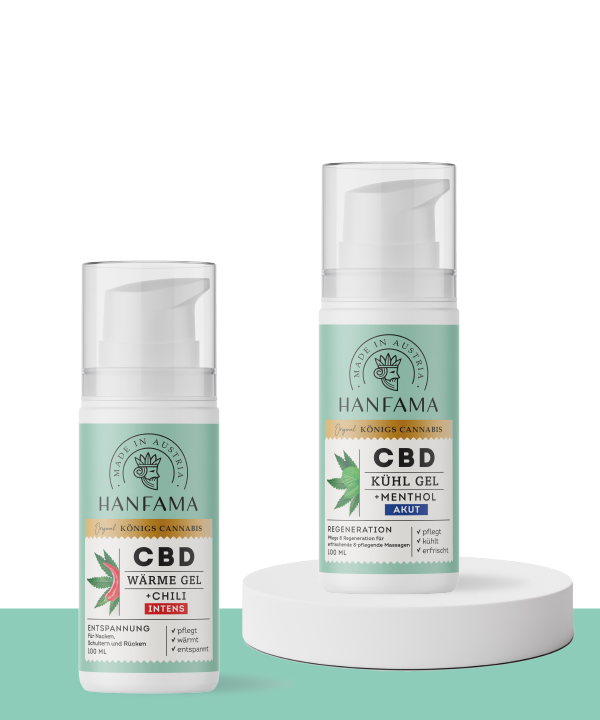 Jetzt KaufenIn jeder Situation die richtige Pflege: Unser CBD Kühl Gel bietet langanhaltende Erfrischung und Regeneration bei Muskelverspannungen. Für intensive Wärme bei Verspannungen in Nacken, Schultern und Rücken sorgt unser CBD Wärme Gel.
